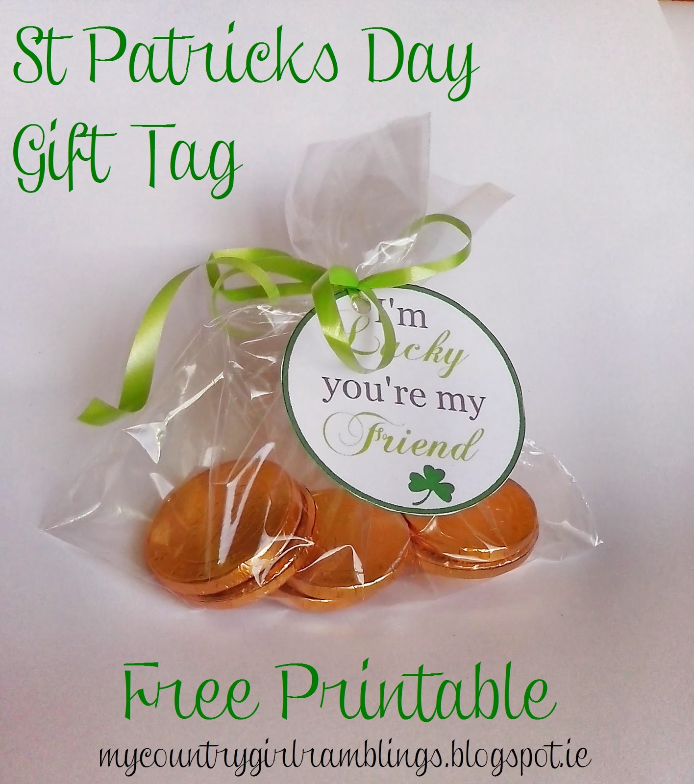 I used a Supervalu sandwich bag (small size) to put the Rainbow Gold in. I cut off the zip lock part and tied it off with some green ribbon I had to hand. Then I added the tag and curled the ribbon with a knife.